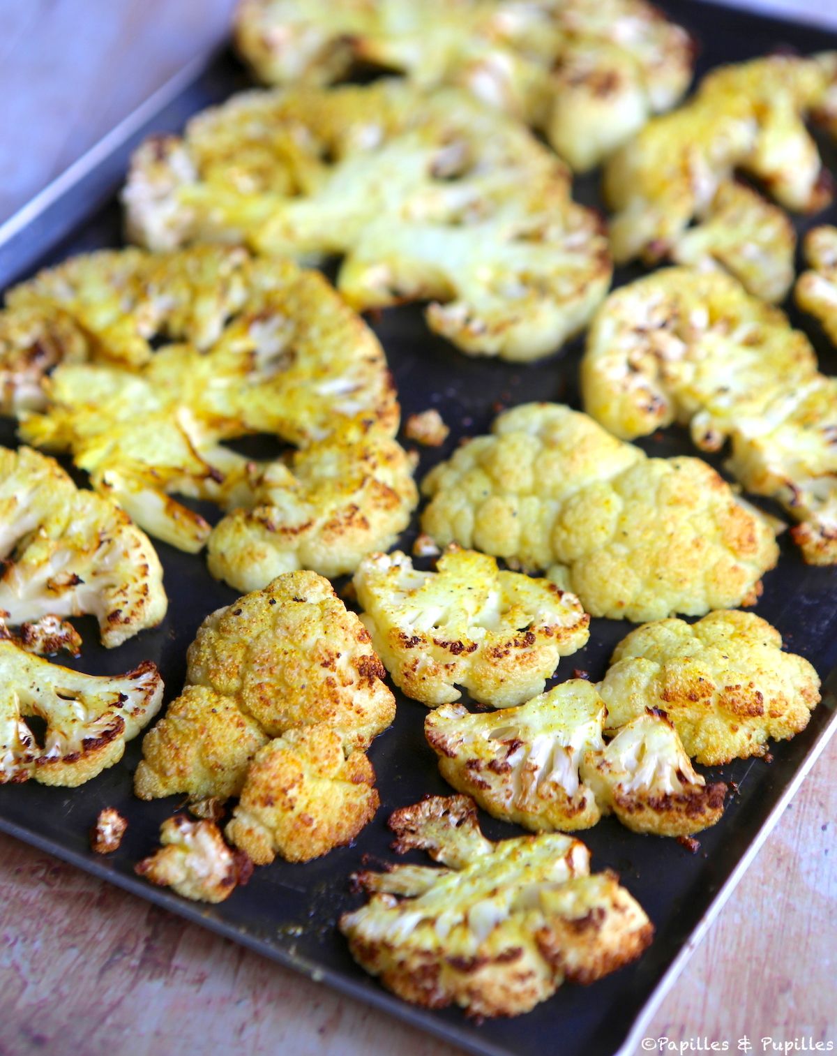 4. Huilez légèrement une plaque de cuisson et déposez-y les tranches de chou-fleur.
