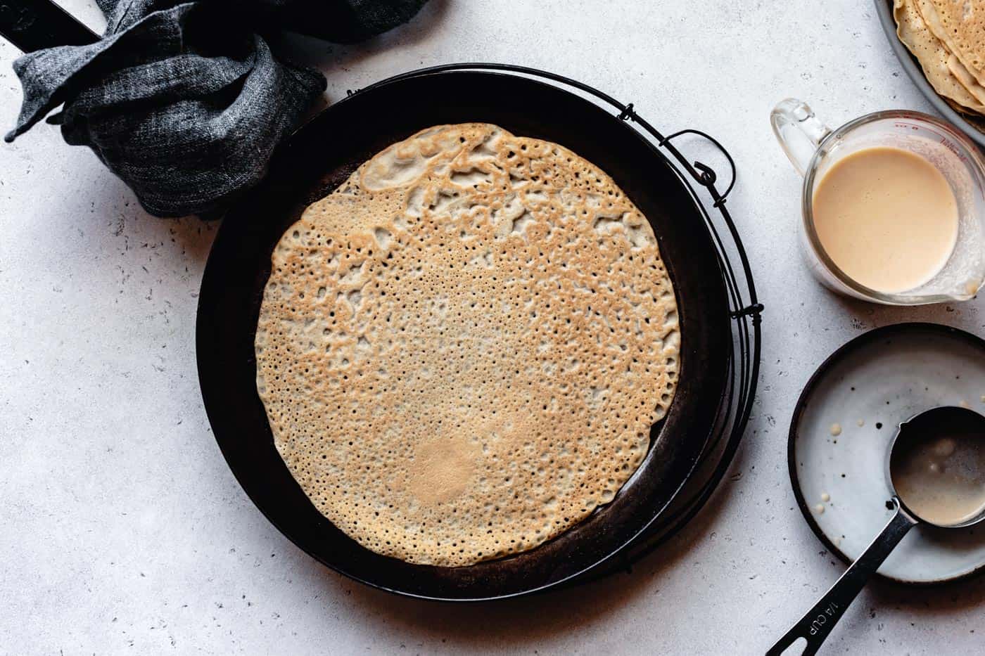 3. Verser le mélange de façon équilibré dans la poêle. Lorsque des petites bulles se font sur la crêpe, c’est le temps de tourner la crêpe de côté. Le temps de cuisson peut varier dépendamment de l’épaisseur de la crêpe.