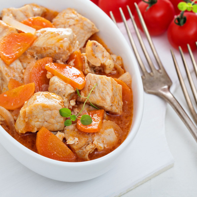 2. Dans une grande poêle, dorer la viande dans la moitié avec de l’huile de coco. Poivrer. Transvider dans la mijoteuse.