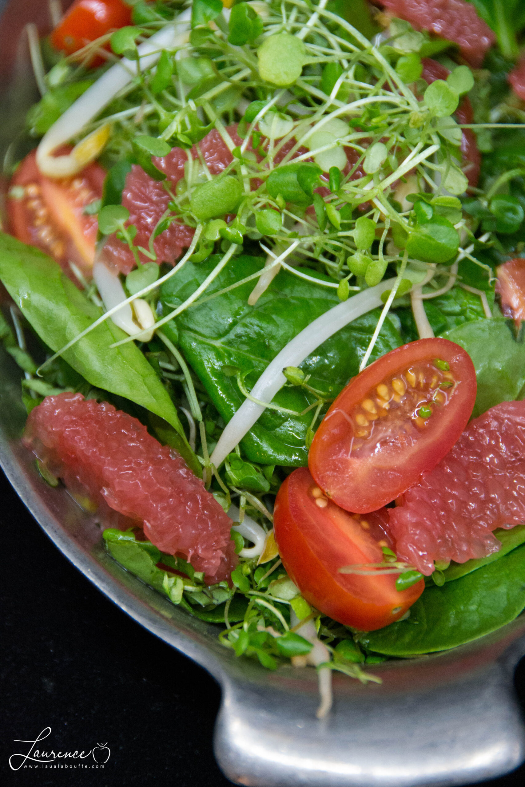Salade asiatique de Cresson, épinards et pamplemousse