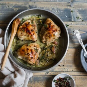 Cuisses de poulet vinaigre de vin blanc, citron et origan
